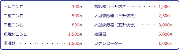 アウトドアや、地域のお祭りなどのときに、ガス器具って欠かせないんですよね。ジェイジェイエフではいろいろなガス器具のレンタルをしています。