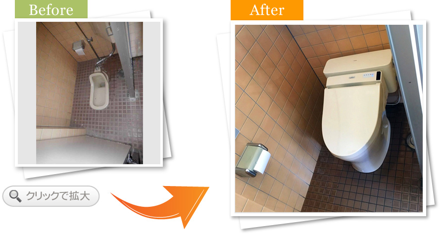 以前は2台とも和式トイレだったのですが、女性スタッフさんの採用を機にトイレを変えたいとのご要望でした。
