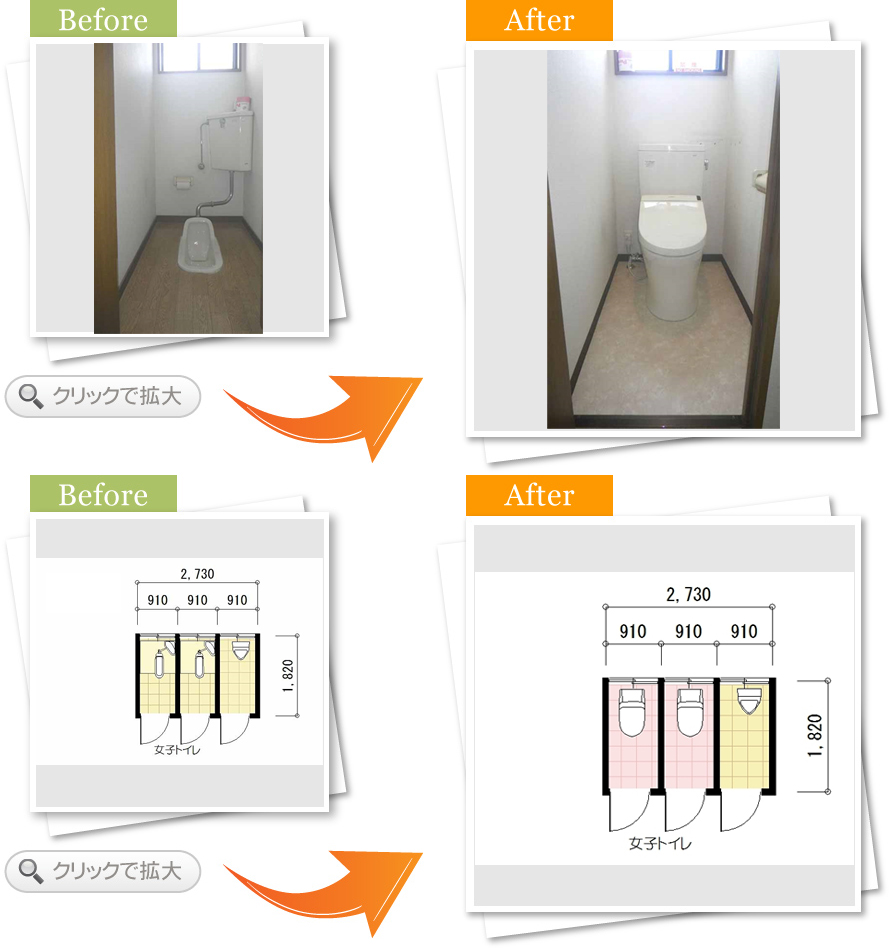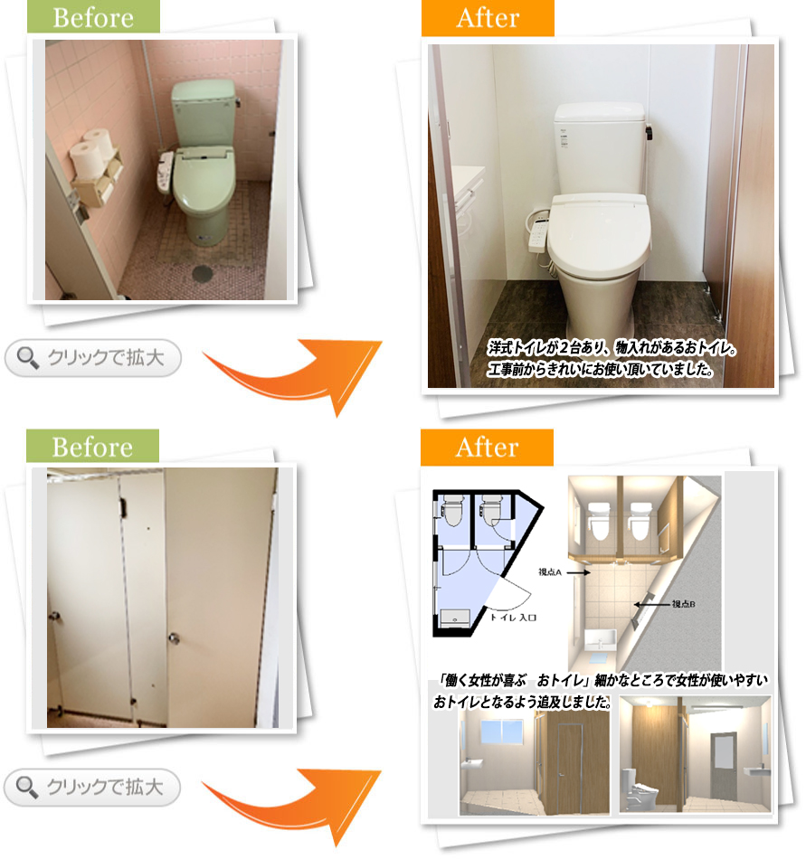 とにかく女性スタッフさんが、きれいになったトイレを喜んで使っていただけています。