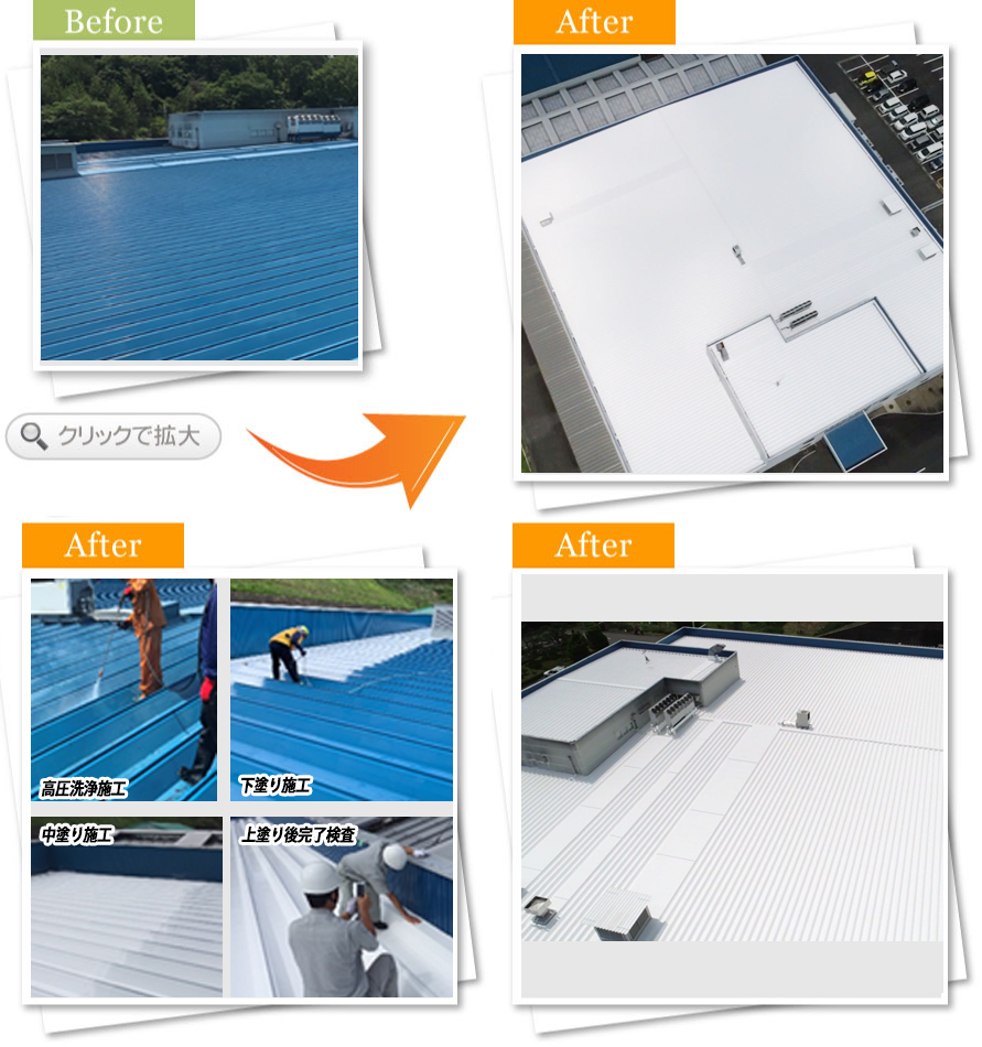 遮熱塗料がどれだけ効果があるのか気になっていました。弊社での施工テストからも塗装する事で遮熱している事が明らかで、根拠もしっかりお伝え頂けたお陰で今回工事をお任せする事にしました。塗料を塗っている所は触れる事が出来る屋根材も遮熱塗料が無い所は火傷しそうな程、熱くなっていたのは驚きでした。