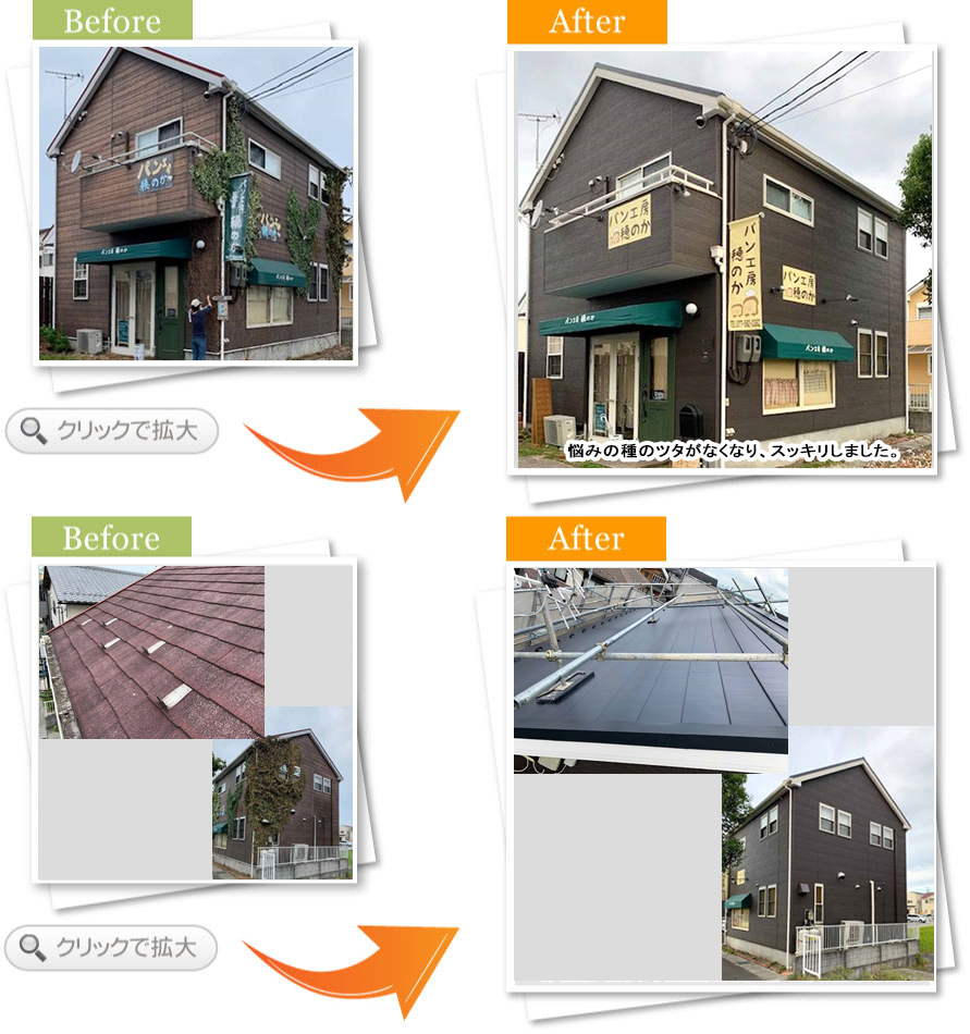 とにかくツタの管理には手を焼いていましたので、無くなって嬉しいです。外壁も屋根も全て金属板を貼っていただいたので新築時みたいに綺麗になり、またお家も数10年持たせられると喜んでいます。