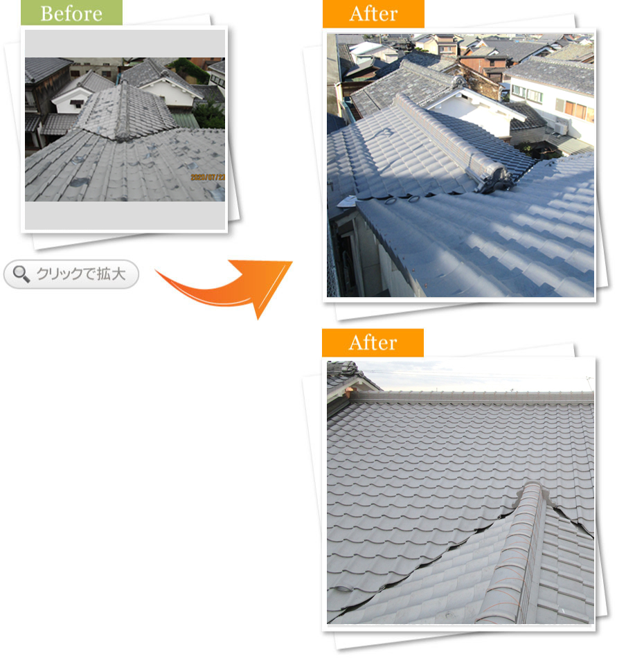 屋根瓦をそろそろやり替えが必要だと感じていました。困った時はいつも気軽に電話をさせて頂いています。今回は大掛かりな工事でしたが、工事中もお店を閉める事無く工事を進めて頂き助かりました。これからも頼りにしています。ありがとうございました。