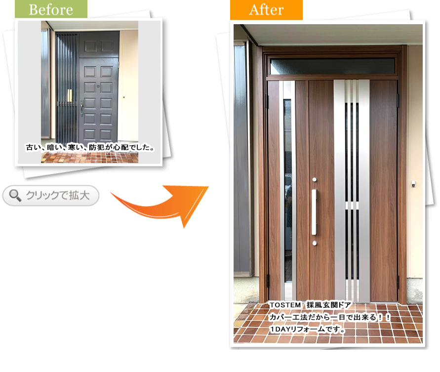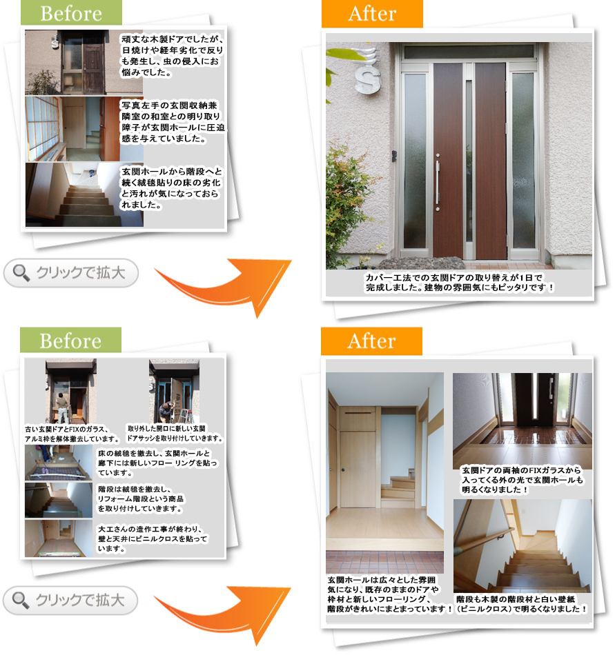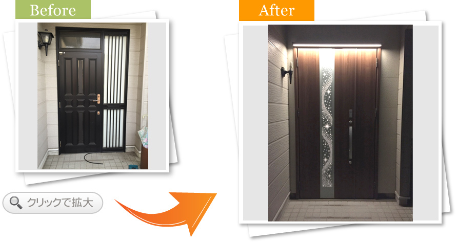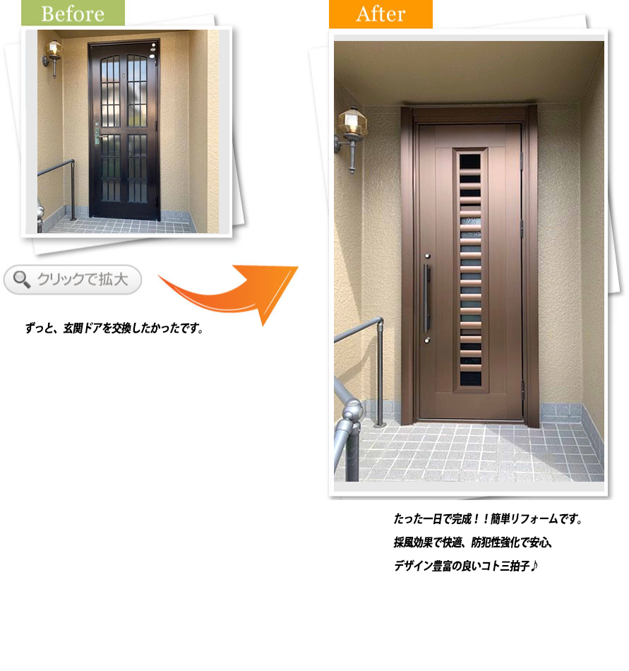 一日で玄関を取り替えていただき、二日目はその廻りの工事で早く仕上げていただき、本当にありがとうございます。