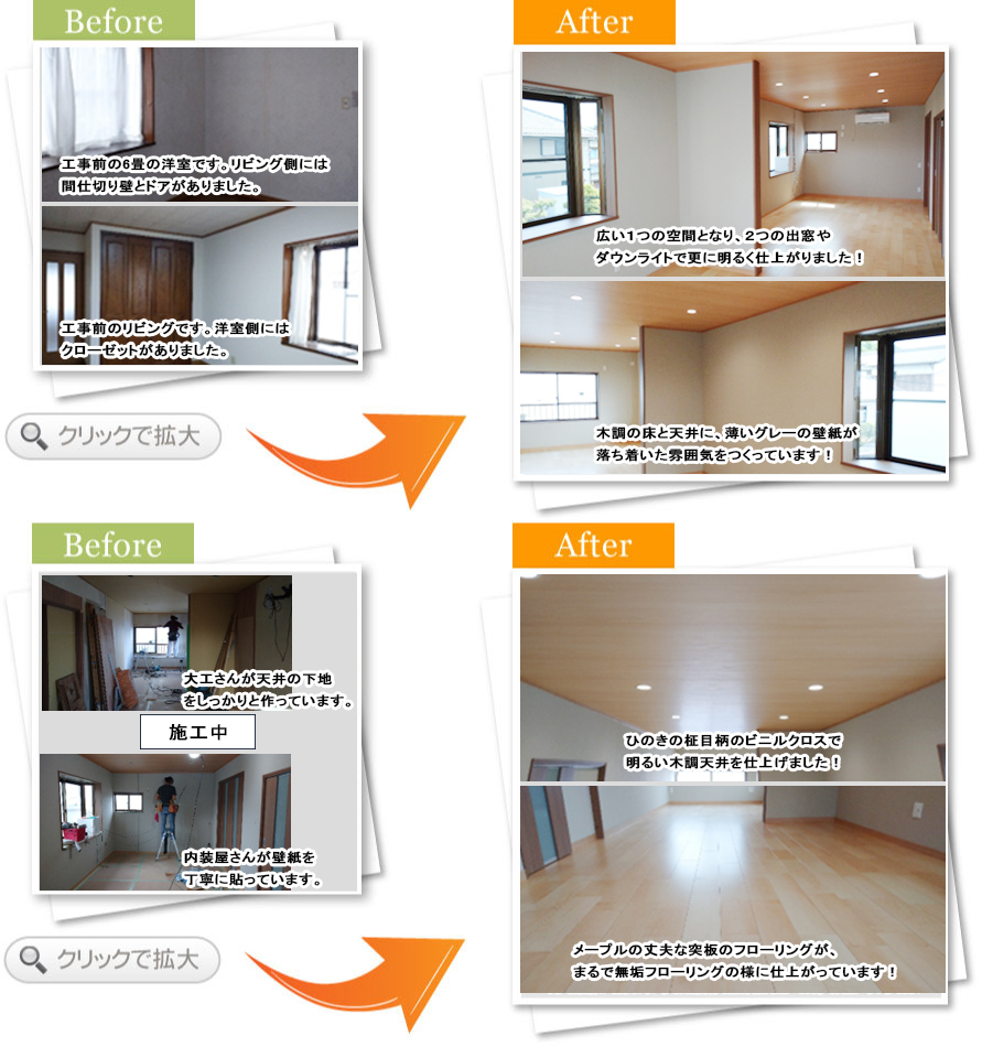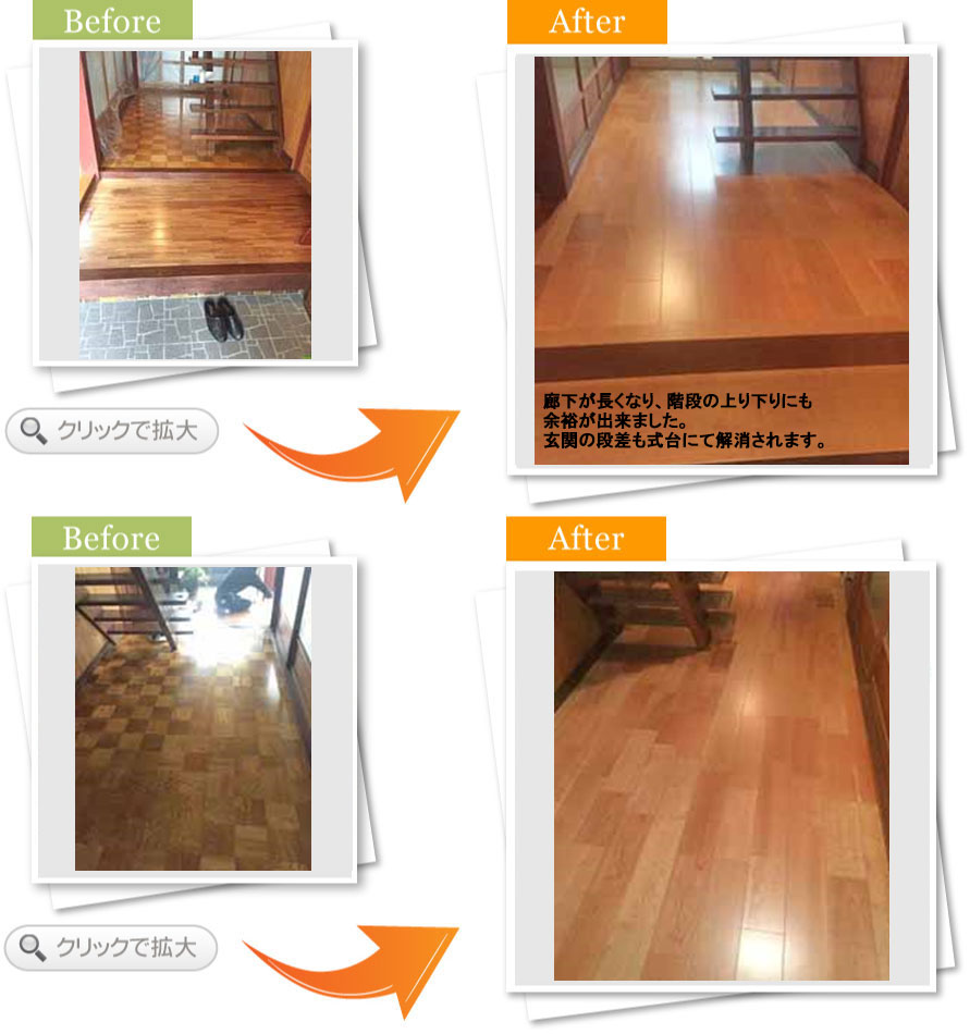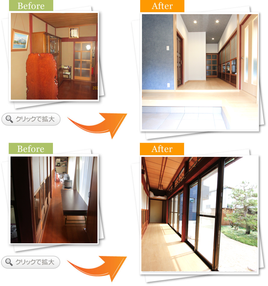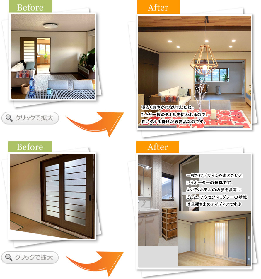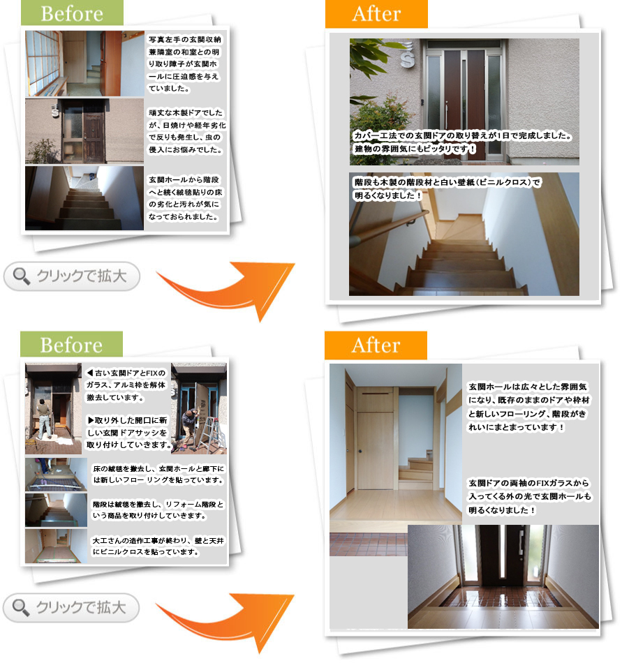 完了後アンケート玄関でお客さんと過ごす時間が多く、もっと居心地の良い空間にしたいと思い相談しました。床や壁の色が明るくなって、お客さんを呼ぶのが楽しみになりました。段差も少なくなり、安全面も満足しています。また何かあればお願いします