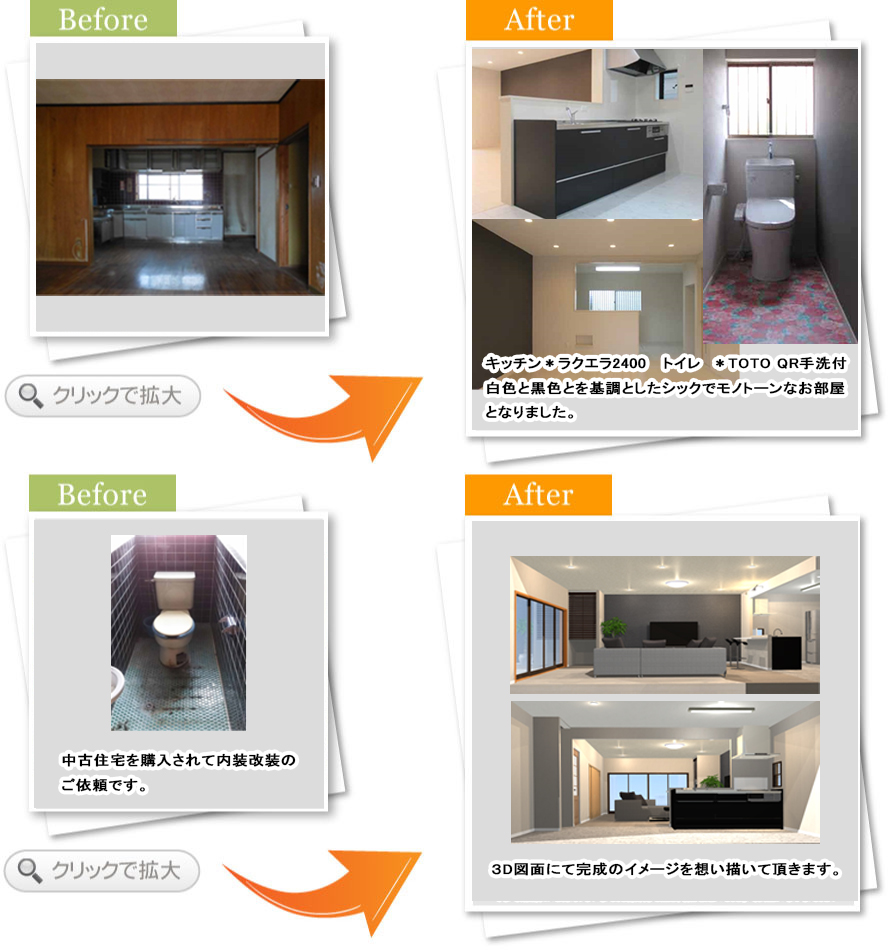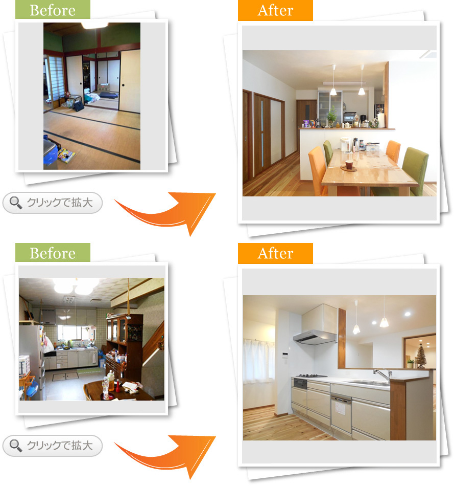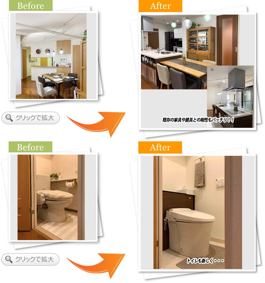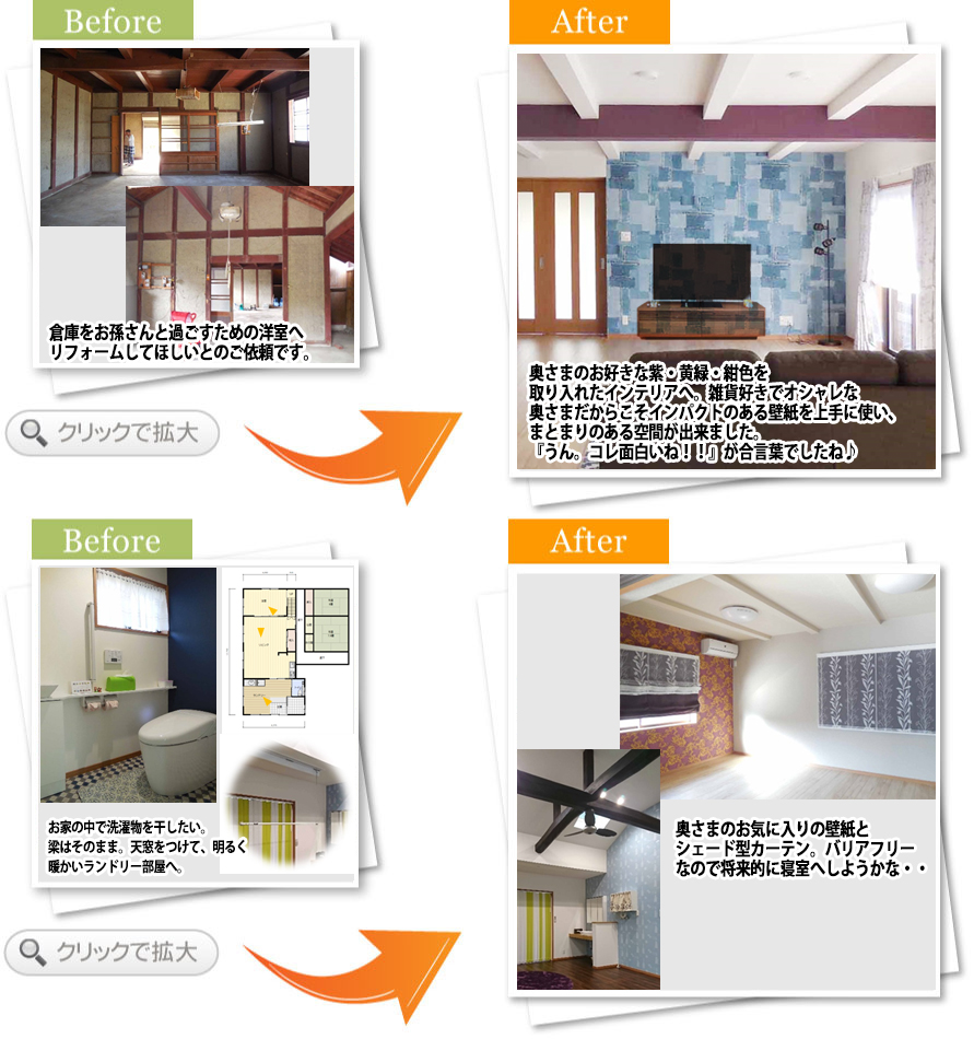 完了後アンケート祖母が大切に住んでいた実家に私たち若い世代が同居生活をすることになり、快適なお家にしたいという思いで今回の工事を依頼しました。小西さんは私達のの想いにしっかりと耳を傾けてくださり、思い描いていた以上のステキな空間を造ってくださいました。これからは娘や祖母と楽しい時間をここで過ごせることと思います。ありがとうございました。