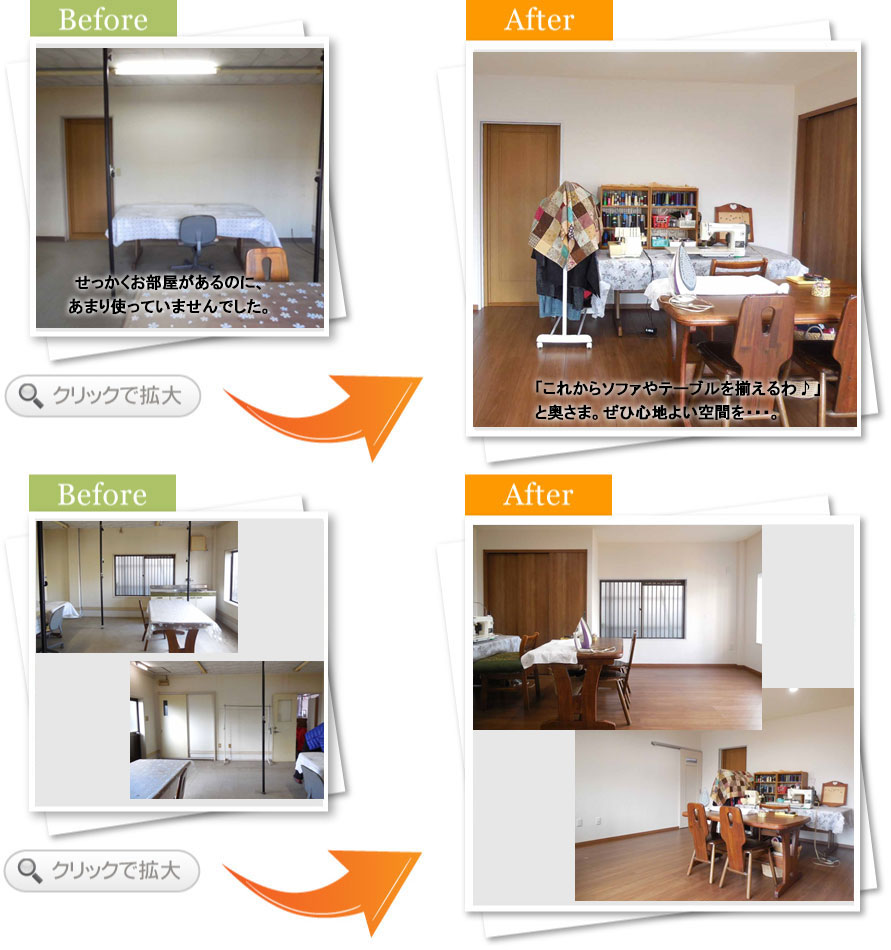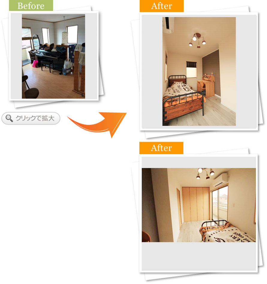 完了後アンケート以前から、あまり使ってないお部屋をお友達とのくつろぐお部屋としてきれいにしたいと思っていました。