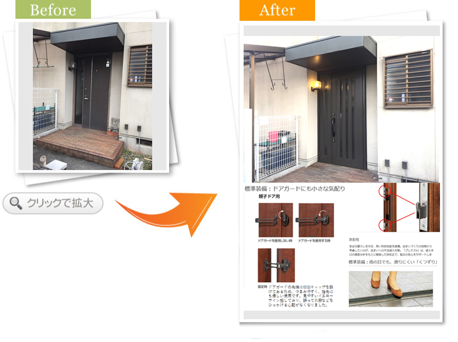 現状の玄関が子扉がFIXで、開け閉めができず開口が親扉しかできず、大きなものなど、入れるのに不便をしていました。
