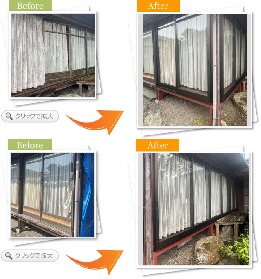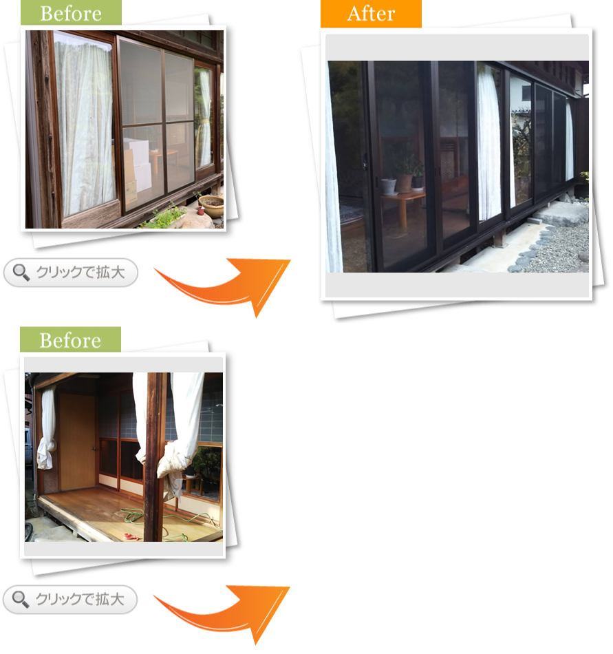 完了後アンケート昔からある木製の縁側掃出し窓ががたつき、隙間風で困っているので、アルミサッシで開けやすく隙間風がないようにしたい
