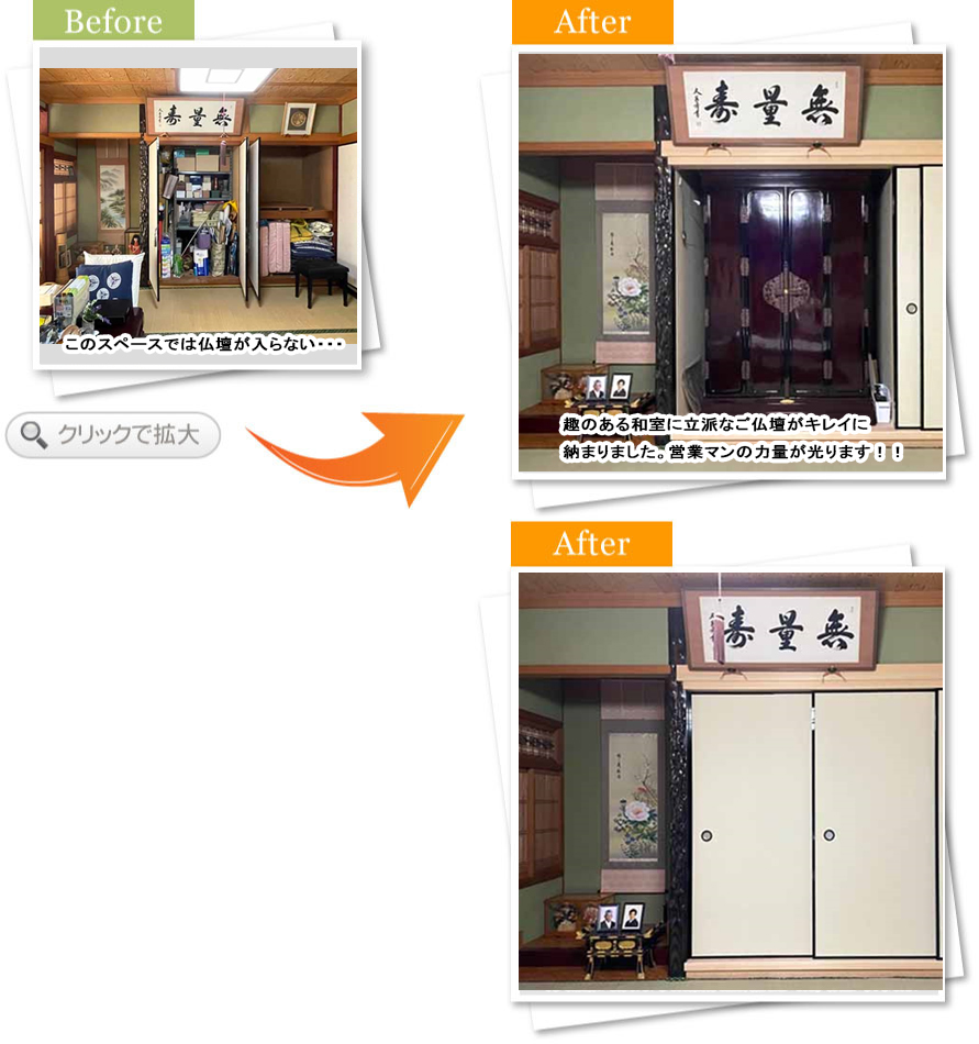お困りごとがあると、スグに頼って頂けて相談を下さるお客さまです。今回は旦那さまがお亡くなりになりご仏壇の場所が欲しいのと、1階に奥さまの