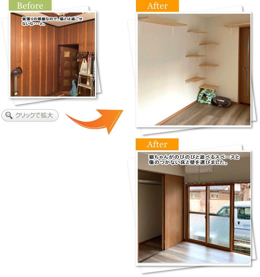 完了後アンケート今ある洋室を猫と一緒に過ごせる空間にしたいと思って菱田さんに相談しました。以前、洗面化粧台を交換し