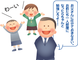「父さんに任せときなさい。お前ら、一人部屋になったらちゃんと勉強しろよ!!」