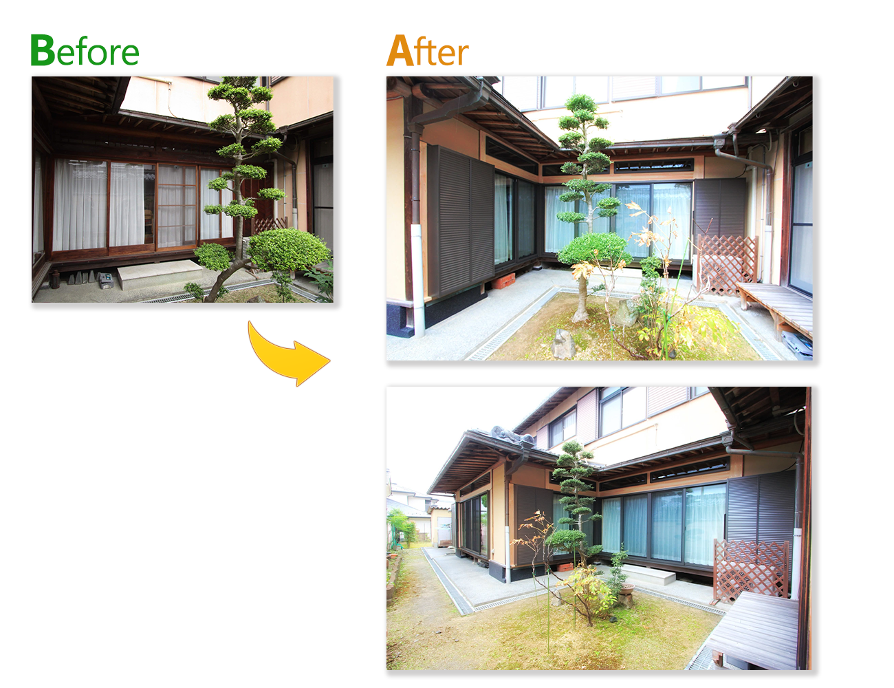 完了後アンケート庭の手入れが楽になり、駐車スペースも広がり大変満足しています。いつも工事をお願いしている山本さんなので、安心してお任せすることができました。また何かあれば宜しくお願いします。